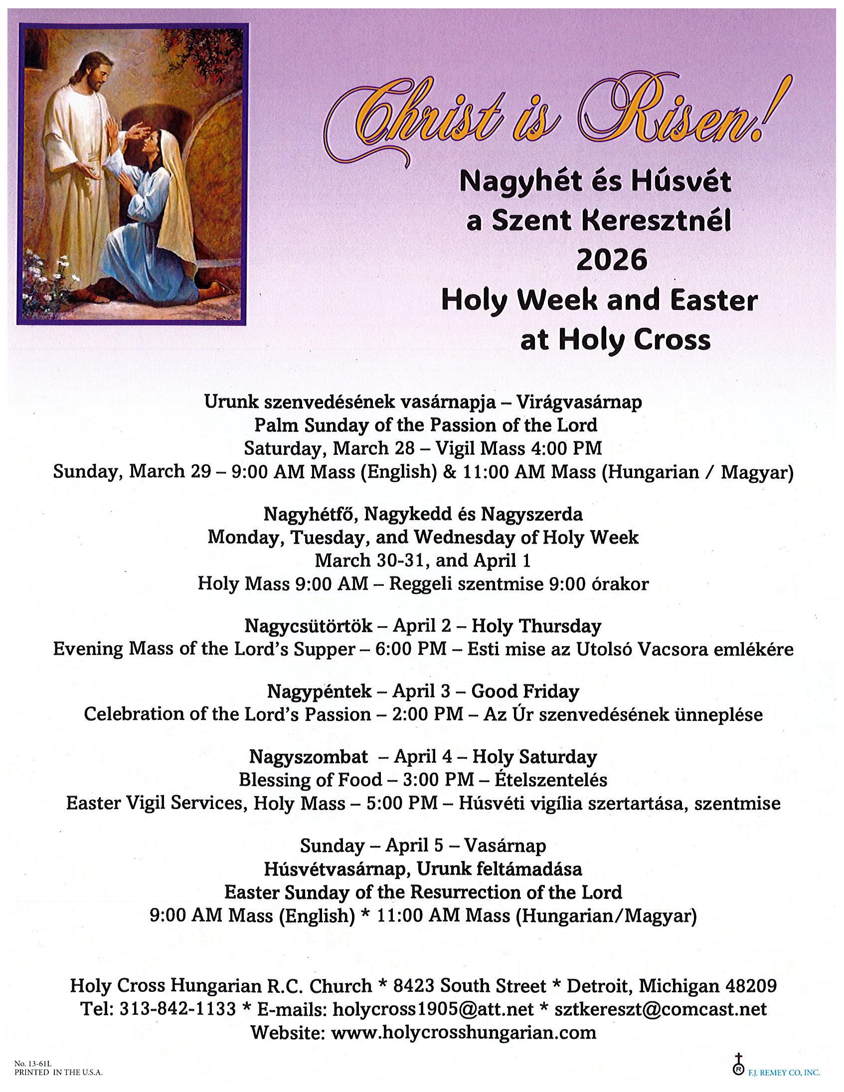 Welcome to Holy Cross Hungarian Roman Catholic Church. Our Parish is built around community, faith, and an overwhelming devotion to tradition. Please feel free to look around. We are one of the gems of the Detroit area and the only Hungarian Catholic Church in Michigan. If you would like to know more our History, go to tab above. Also, do not forget to look at our picture galleries to get a better view of our beautiful artwork, architecture and parish life. You are welcome to join us in prayer. For further information about Our Parish, please click on the tabs above or call the office.
