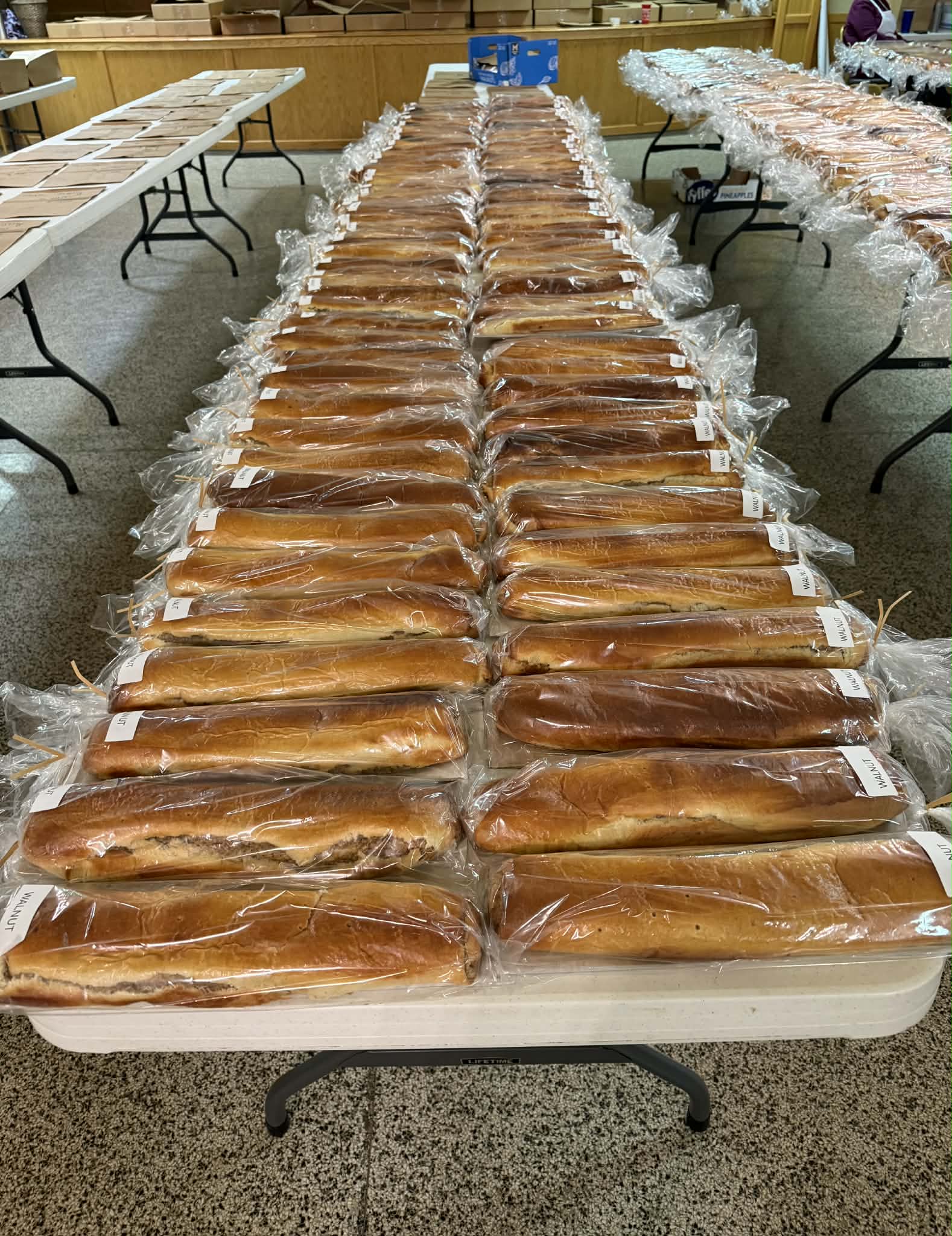 Once again, through the hard work of many parishioners, the treats for the annual Easter Kalács Sale are ready for pickup on Saturday and Sunday. Without their dedication and hard work, none of this would be possible.