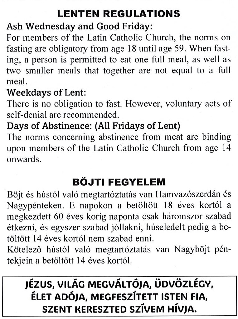 Lenten Prayer and Regulations